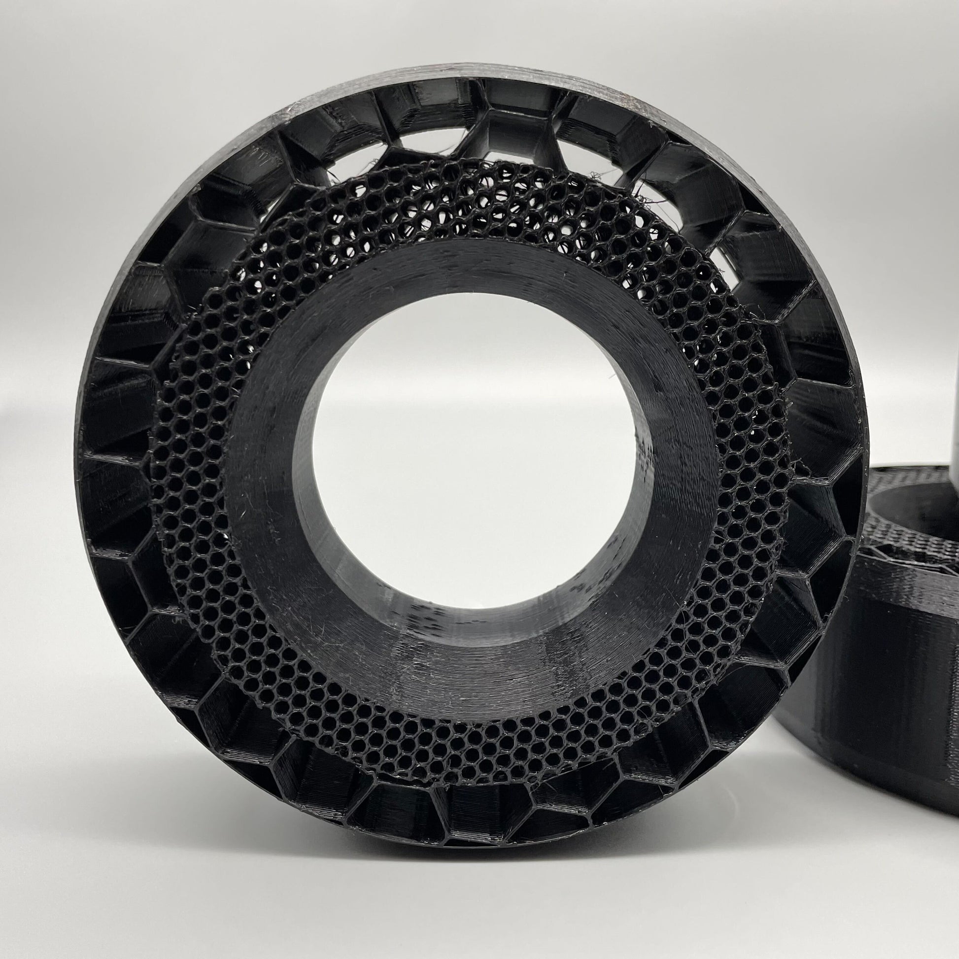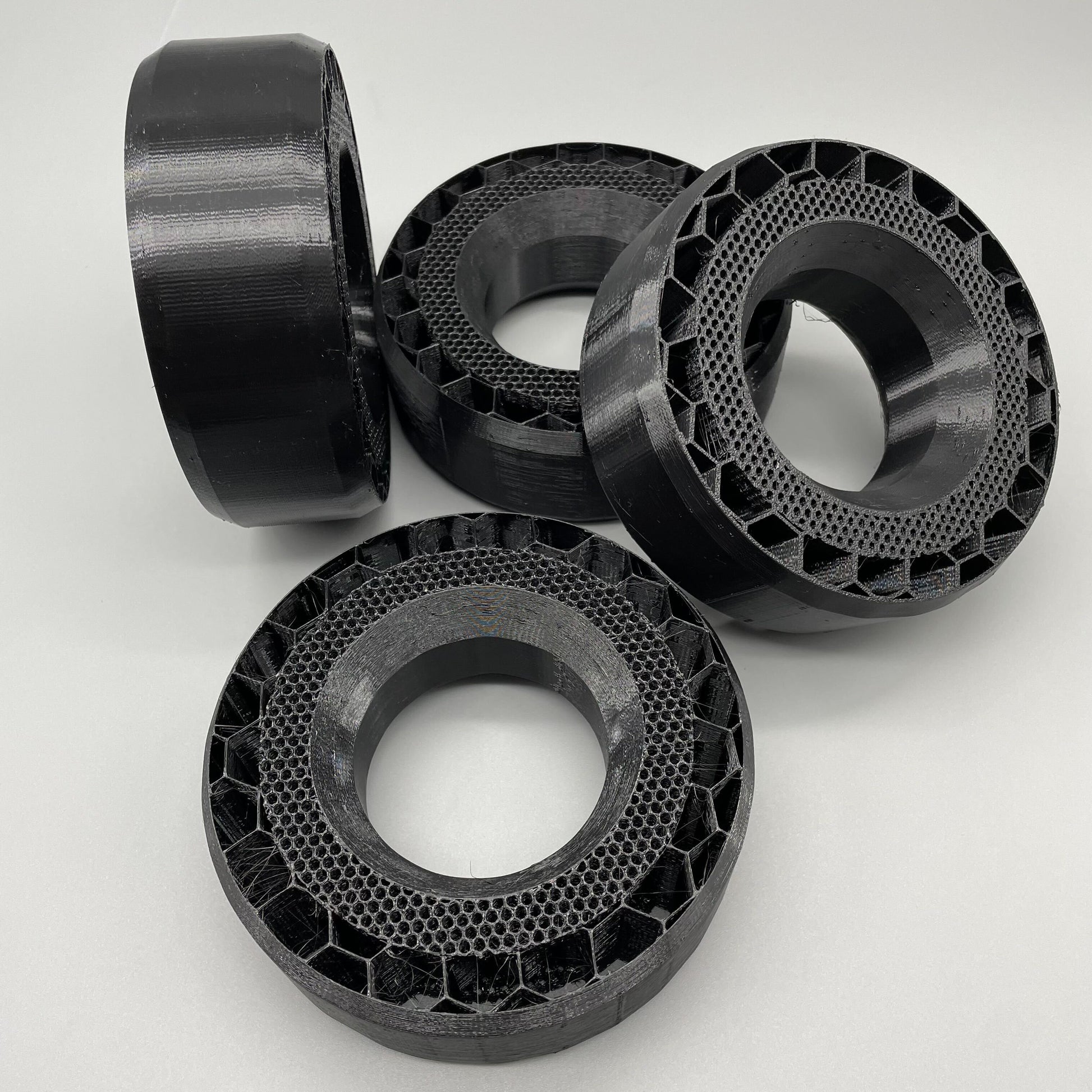 Our 3D Printed TPU Tire Inserts are crafted with high-quality, flexible plastic that is temperature resistant and waterproof. They offer improved side-hilling, tire contact patch, and eliminate tire folding and rolling. Unlike their foam counterparts, you can expect an increased lifespan and maintenance of the original shape and composition. Perfect for 2.2 x 5.7 tires, this product is compatible with Proline and other brands.